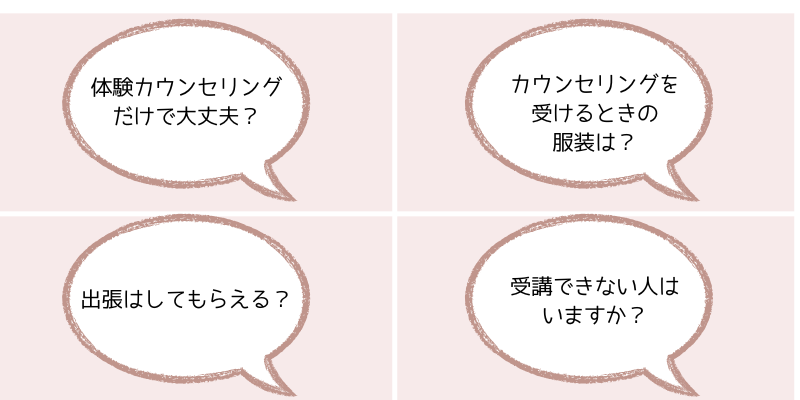 - 体験カウンセリングはzoomで行われます。時間は40分~60分です。
